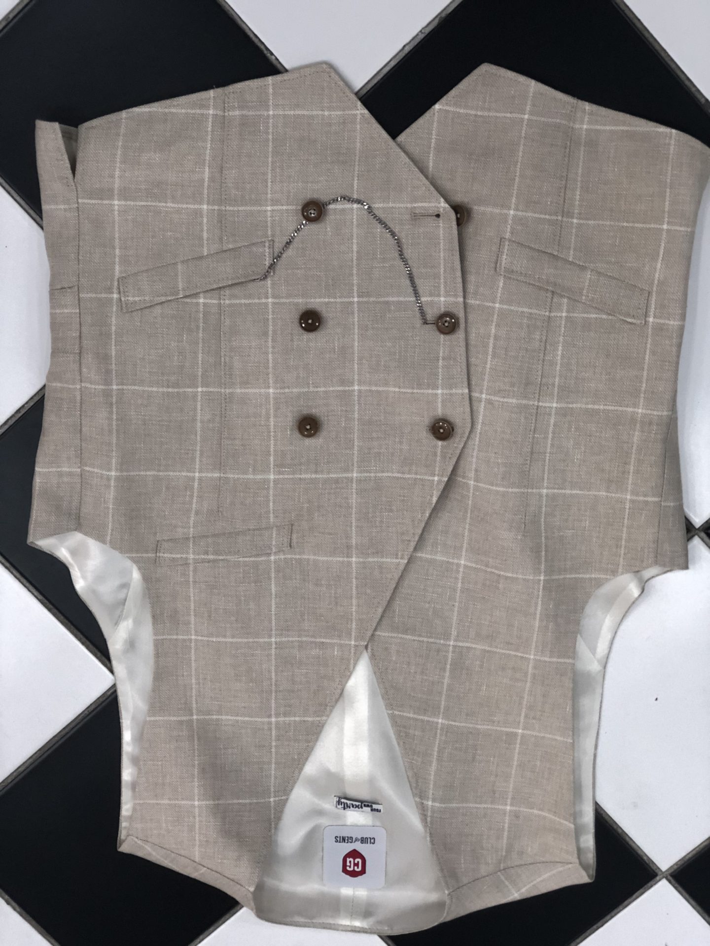 Modische CG Weste/WAIS im KAROMUSTER /beige-SLIMFIT/YOUR OWN PARTY
