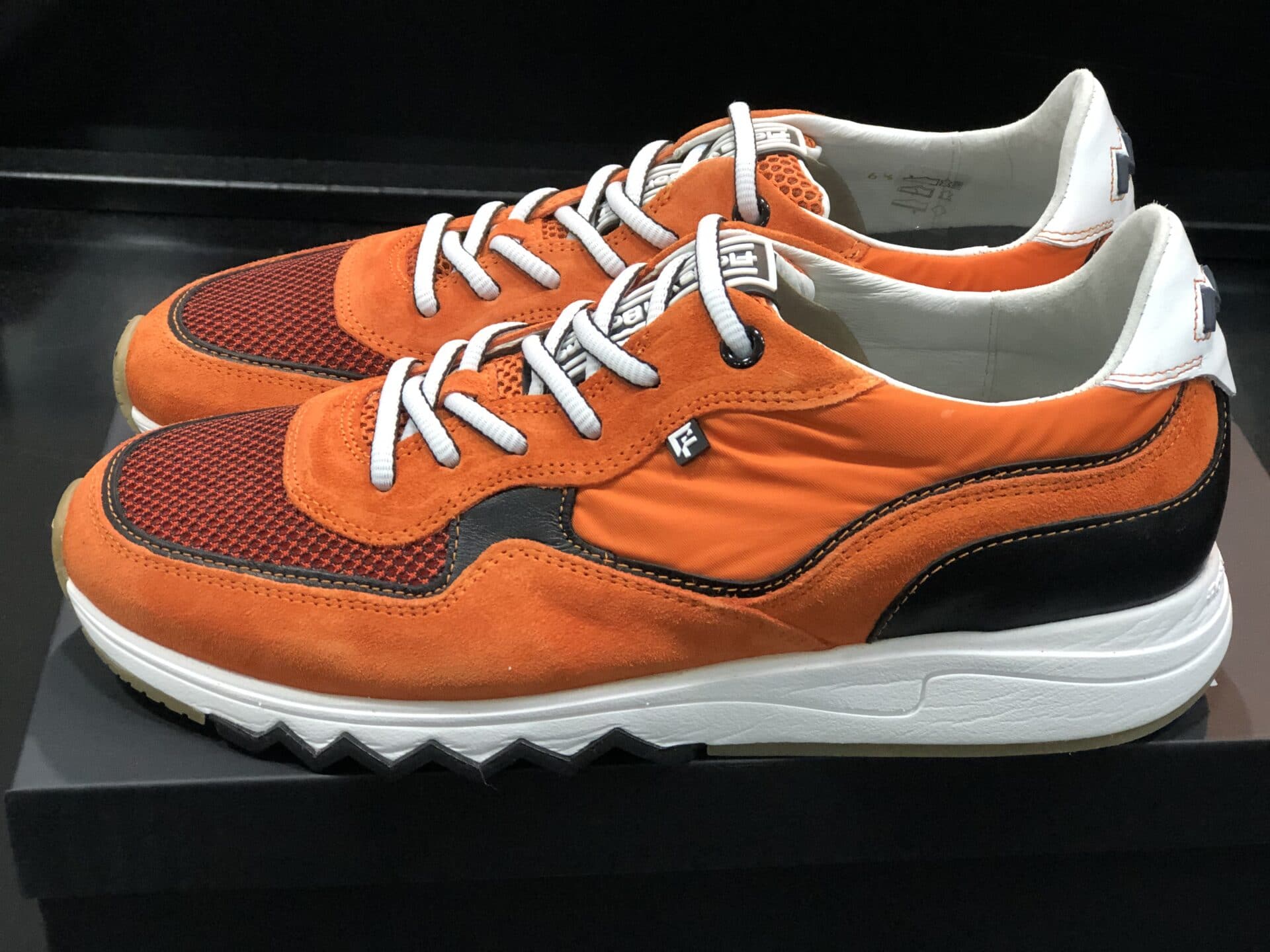 Die Kombination aus verschiedenen Farben und Materialien macht diesen SNEAKER zu einem ganz besonderen Modell. Der Sportliche SNEAKER ist aus orange Leder /Gummiprofilsohle zweifarbig